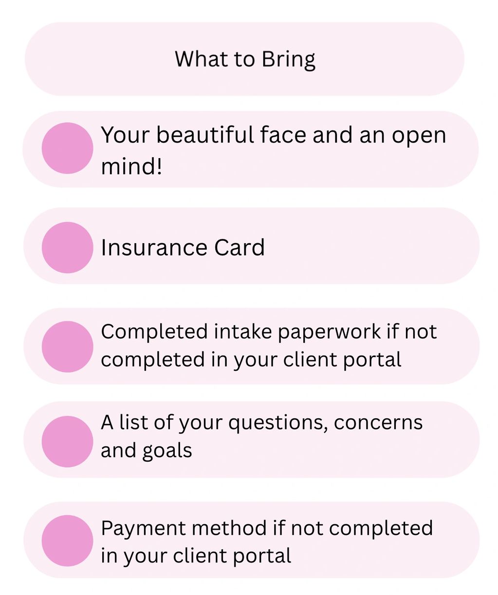 Appointments are 50 minutes long. Feel free to bring someone with you or a comfort object. We want to you to feel welcome and safe at Bloom!